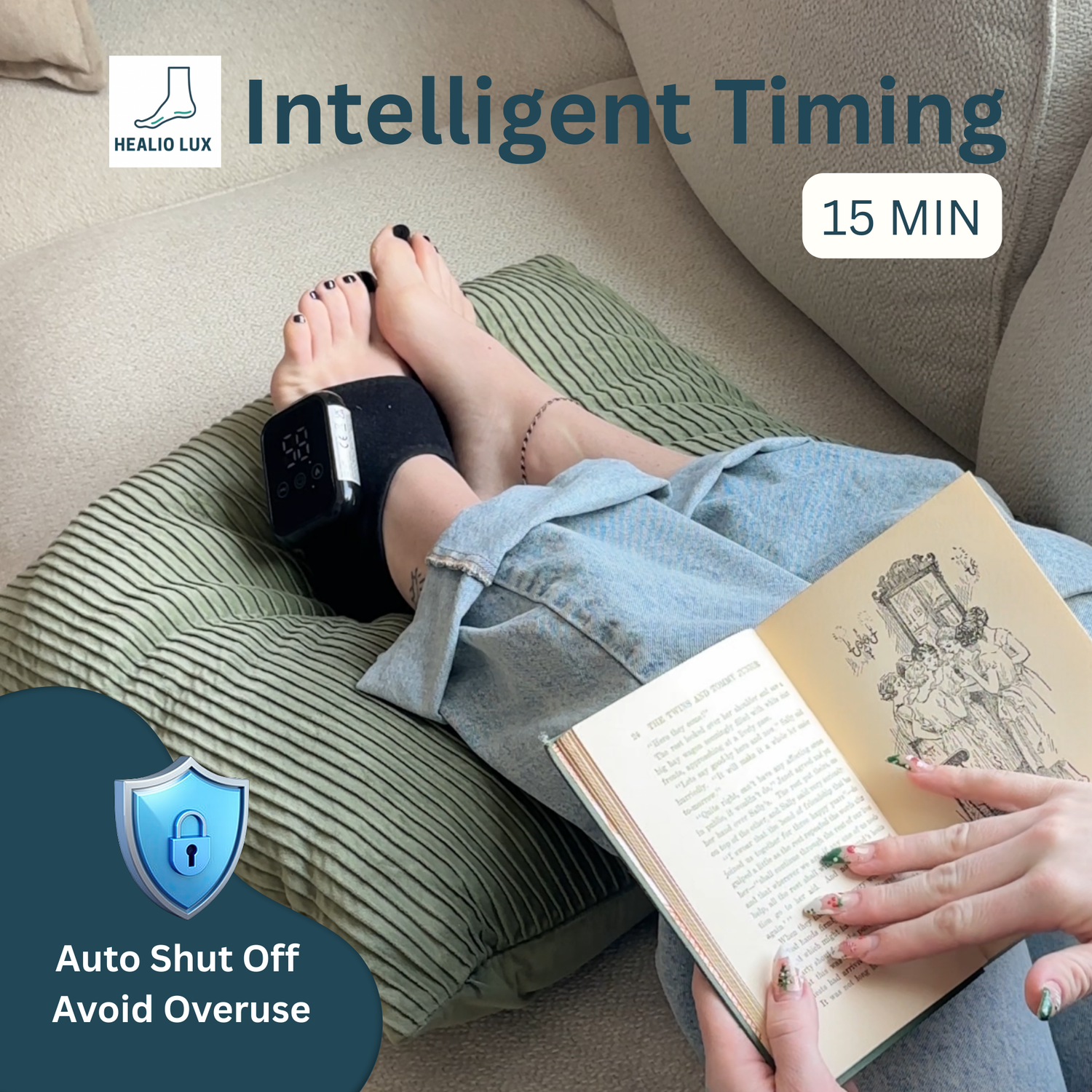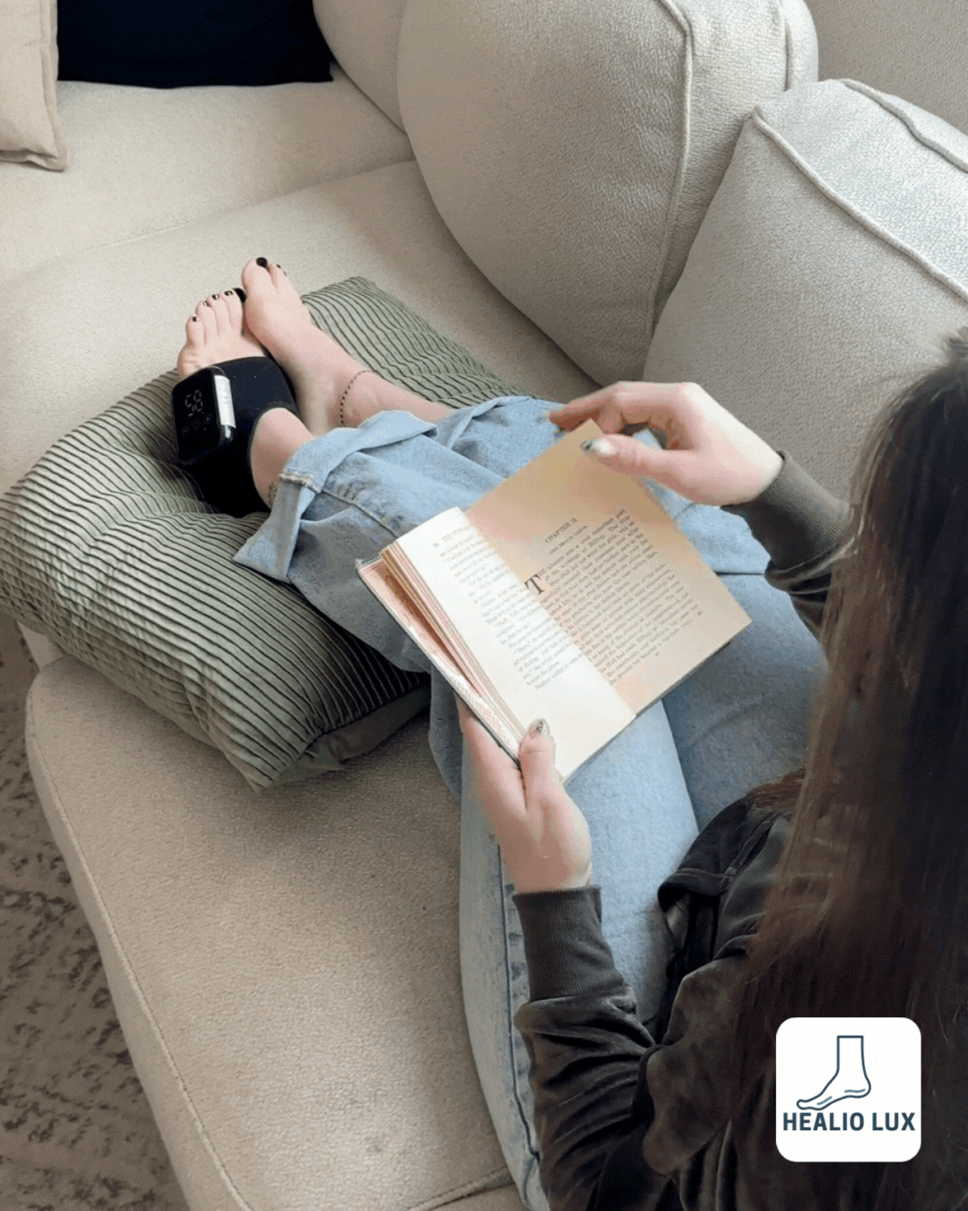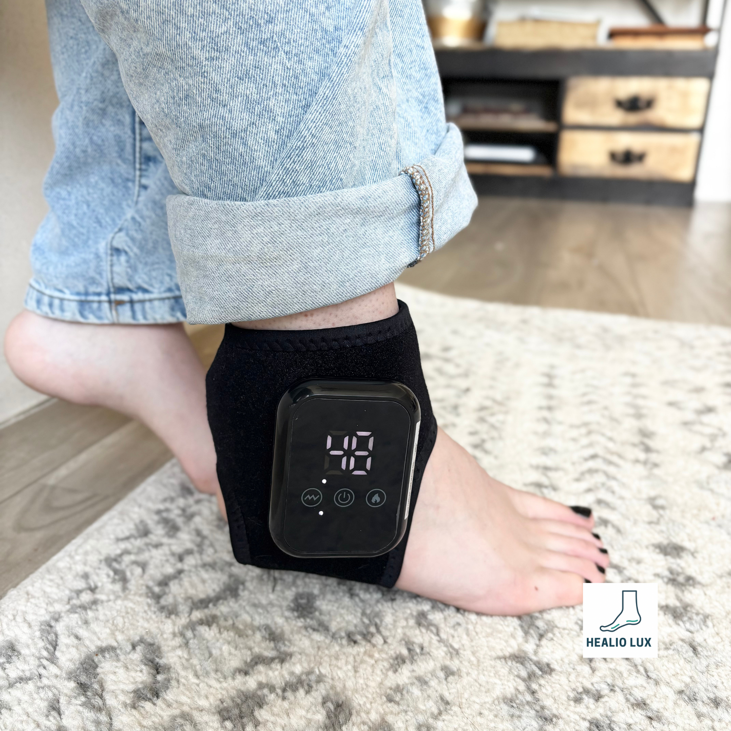 Healio Lux is a wrap-around ankle comfort pad that uses gentle heat and vibration to create a soothing, relaxing experience.